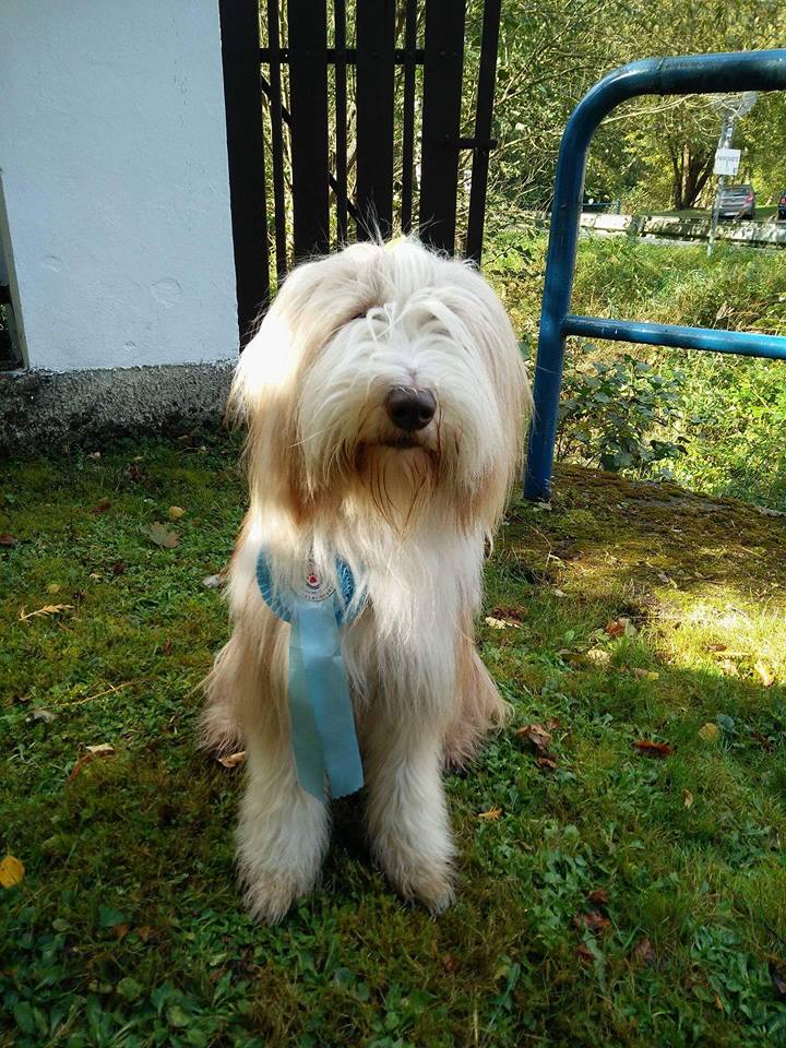 Tak jako tak, Iduška zkoušku splnila a o jediný bodík jí utekla známka výborná. Takže na první pokus – úúúžasné! Iduše se moc hezky soustředila a vydržela cvičit bez jediného zaváhání celou sestavu, která trvala asi tři minuty. Tak příště snad více bodů 😀